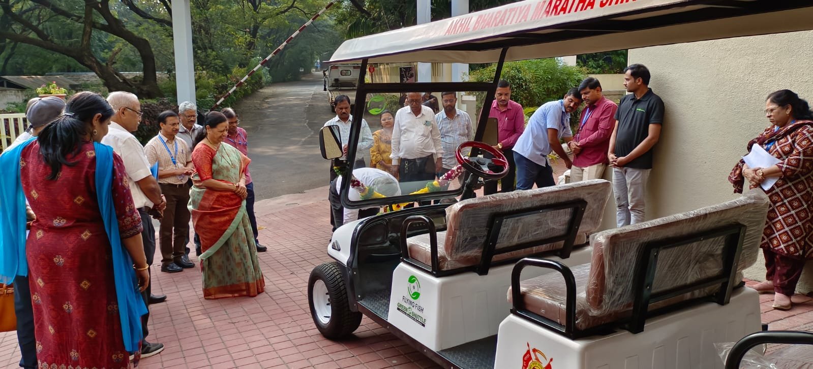 नुकतीच सुरू केलेली विनामूल्य इलेक्ट्रिक वाहन सेवा — मुख्य प्रवेशद्वारातून थेट कॉलेजपर्यंत सुरक्षित, स्वच्छ आणि पर्यावरणपूरक प्रवासासाठी.